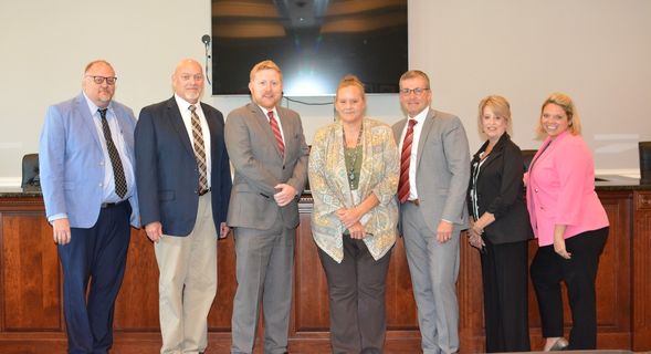 The City of Lyons, Municipal Court (L-R) - Lyons Police Captain Geoffrey Parker; Probation Officer, Jody Williams; Solicitor Paul Calhoun; Lyons Police Dept. Clerk of Courts, Stacy Morris Judge Paul Cook; Probation Officer, Connie Mosley, and Probation Officer Amanda Corum.